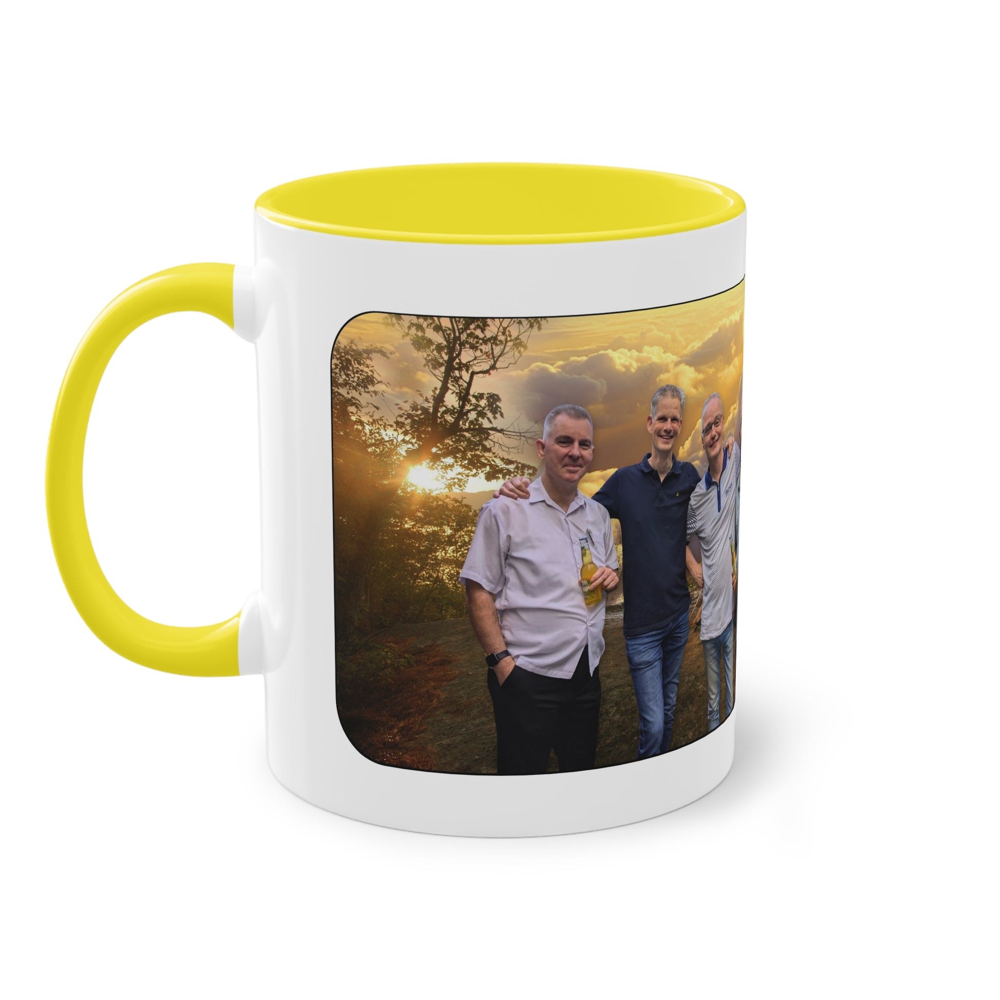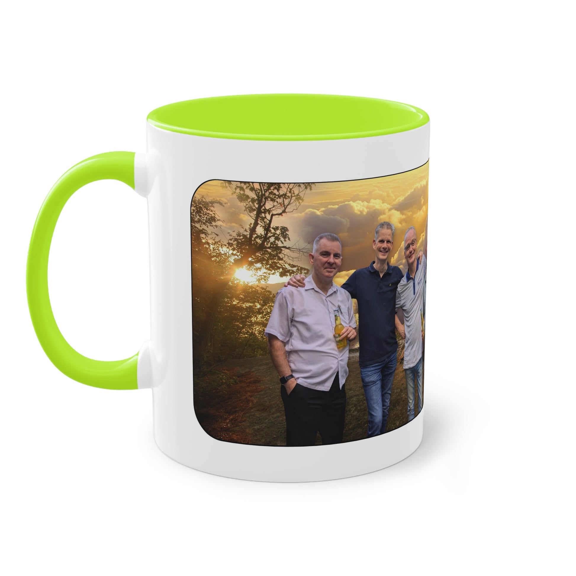Deze tweekleurige koffiemok is verkrijgbaar in 12 kleurrijke kleurenschema's waaruit u kunt kiezen. Elke mok heeft een inhoud van 0,33 liter en een prachtige glanzende coating die lang meegaat. Het C-vormige handvat met goede grip zorgt ervoor dat u comfortabel kunt nippen.